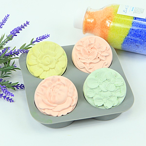 원형 꽃 실리콘 몰드 4종 4구