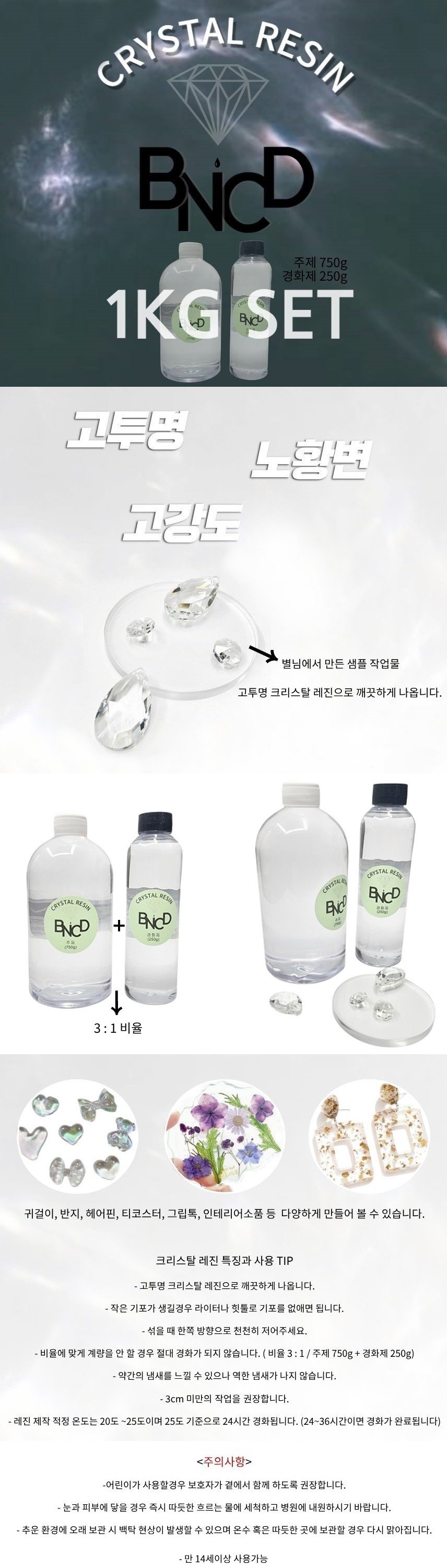 크리스탈 레진 1kg 세트 (주제 750g + 경화제 250g) DIY SET