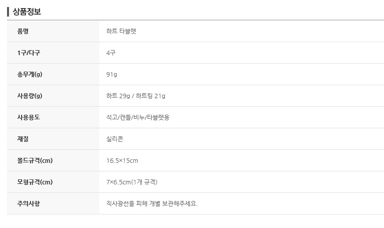 하트 타블렛 금형 4구 실리콘 몰드