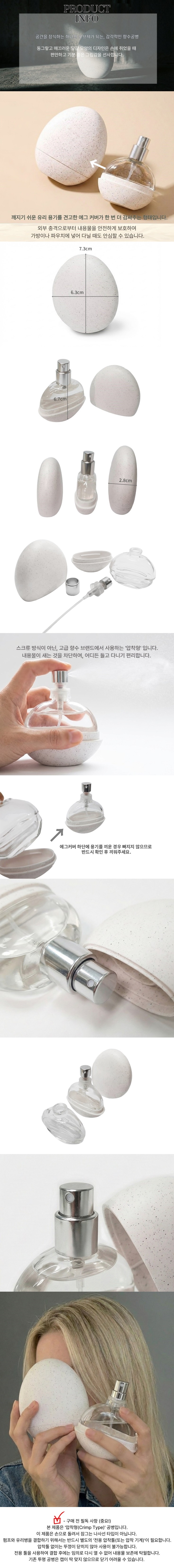 에그 향수용기-용량: 15ml-규격: 13파이 (13mm) 펌프넥-구성유리 용기 + 에그 커버 (캡/하단) + 압착형 펌프 + 노즐